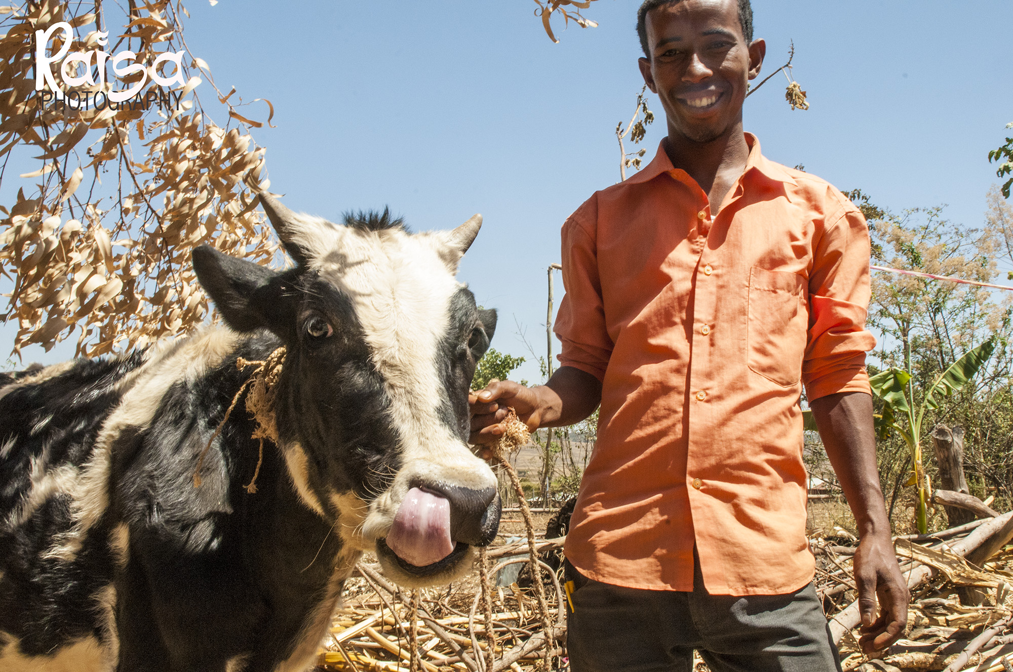 For the “WHY” side of the handout, I really wanted to make sure that we were including real photos of farmers and the benefits of row planting. So, I got to spend a whole day in the field taking photos of farmers, their families and their teff harvests, in addition to some posing for showing the benefits of planting in rows. For example, with bigger harvests, you can send your children to school OR you can buy a cow.