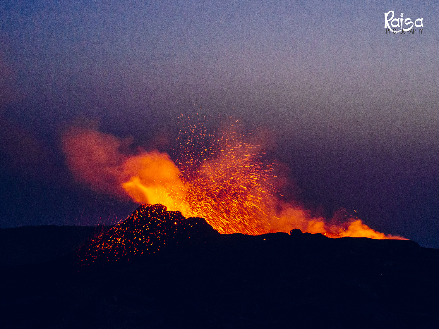The climb itself was a gently three hour climb although the volcanic rocks were quite sharp! The group was very large and everyone followed at their own pace. We had climbed Erta Ale with the intention of getting close and observing it’s active lava lake- one of the biggest in the world. What we found however was a very active volcano spewing molten lava into the air. As we approached the rim, we watched fascinated. It looked like fireworks continuously exploding into the sky.