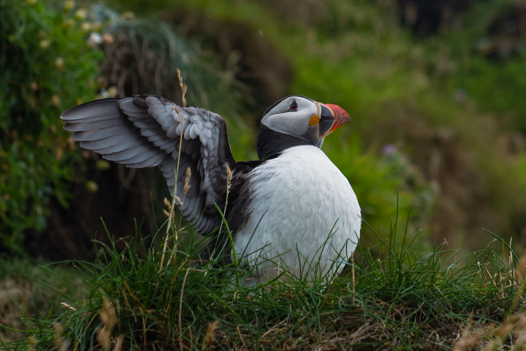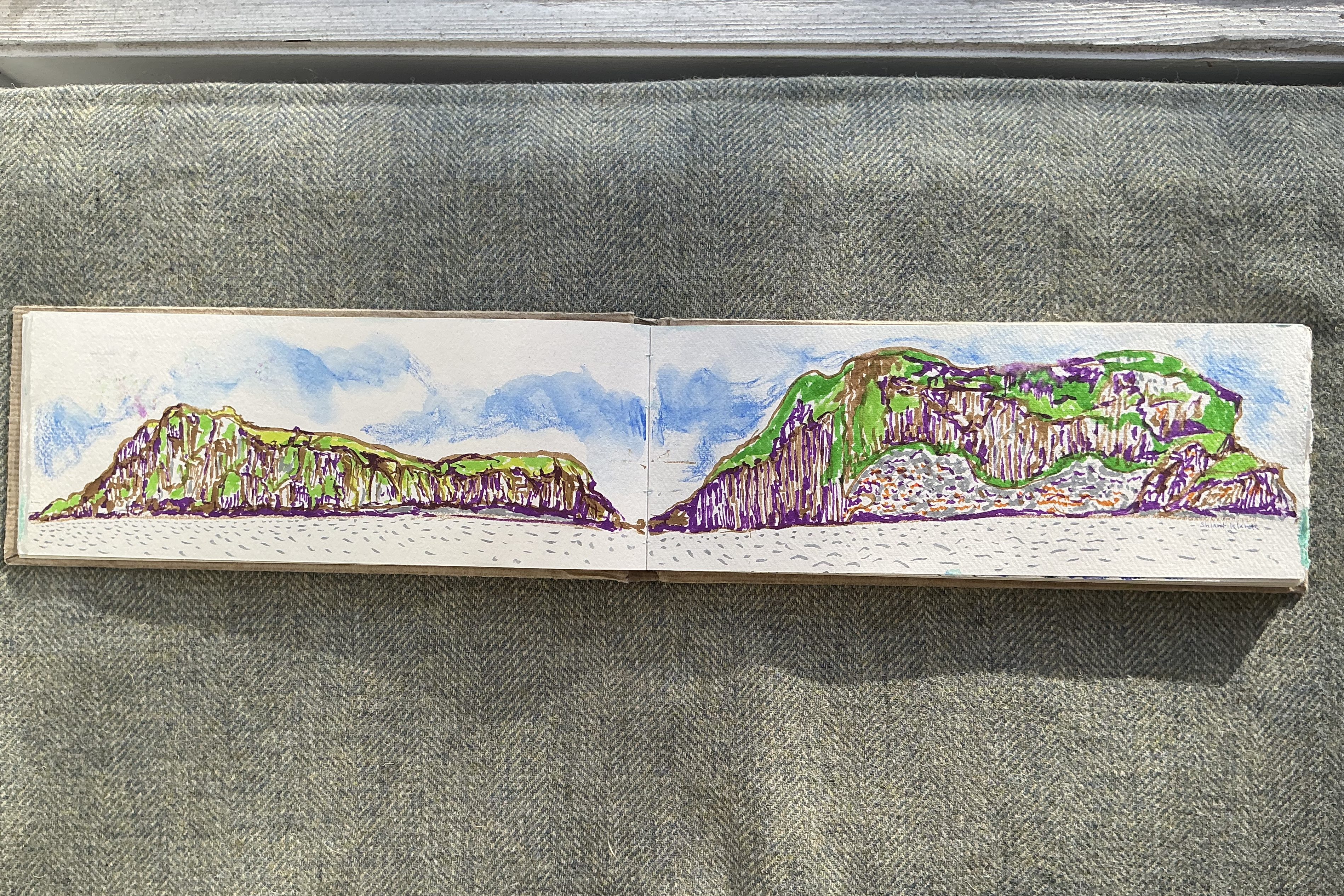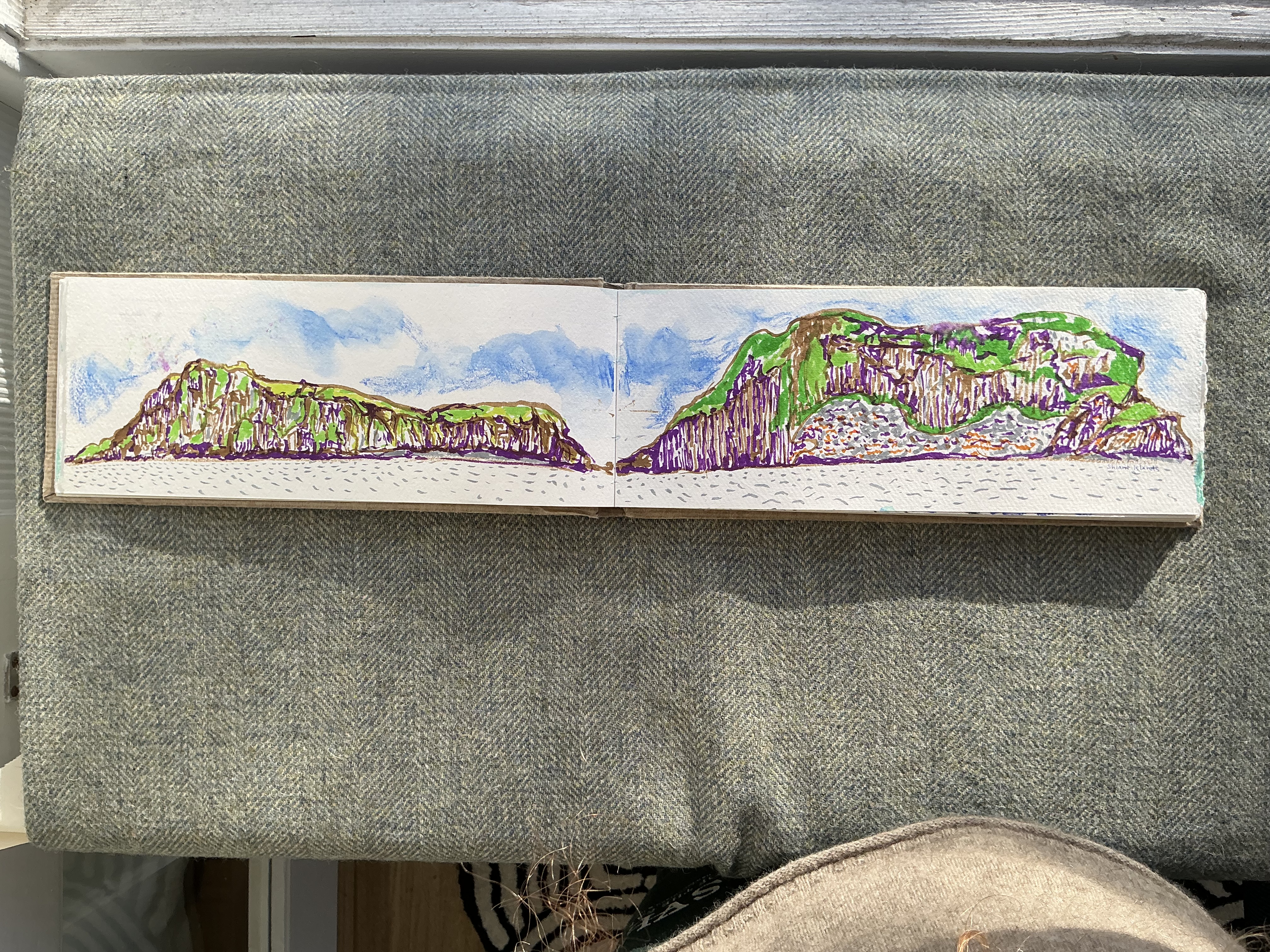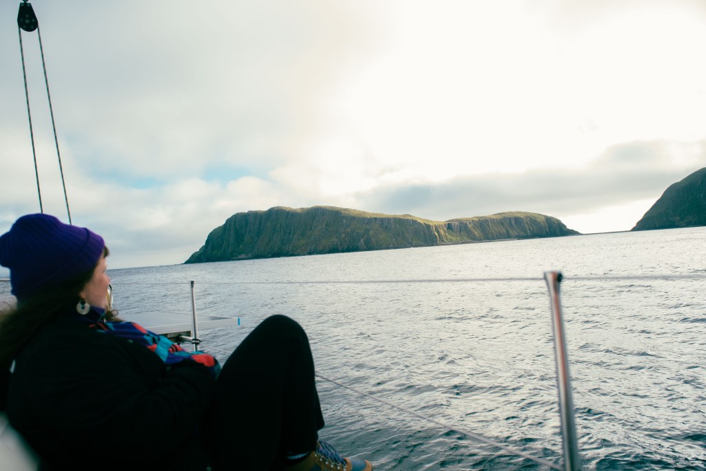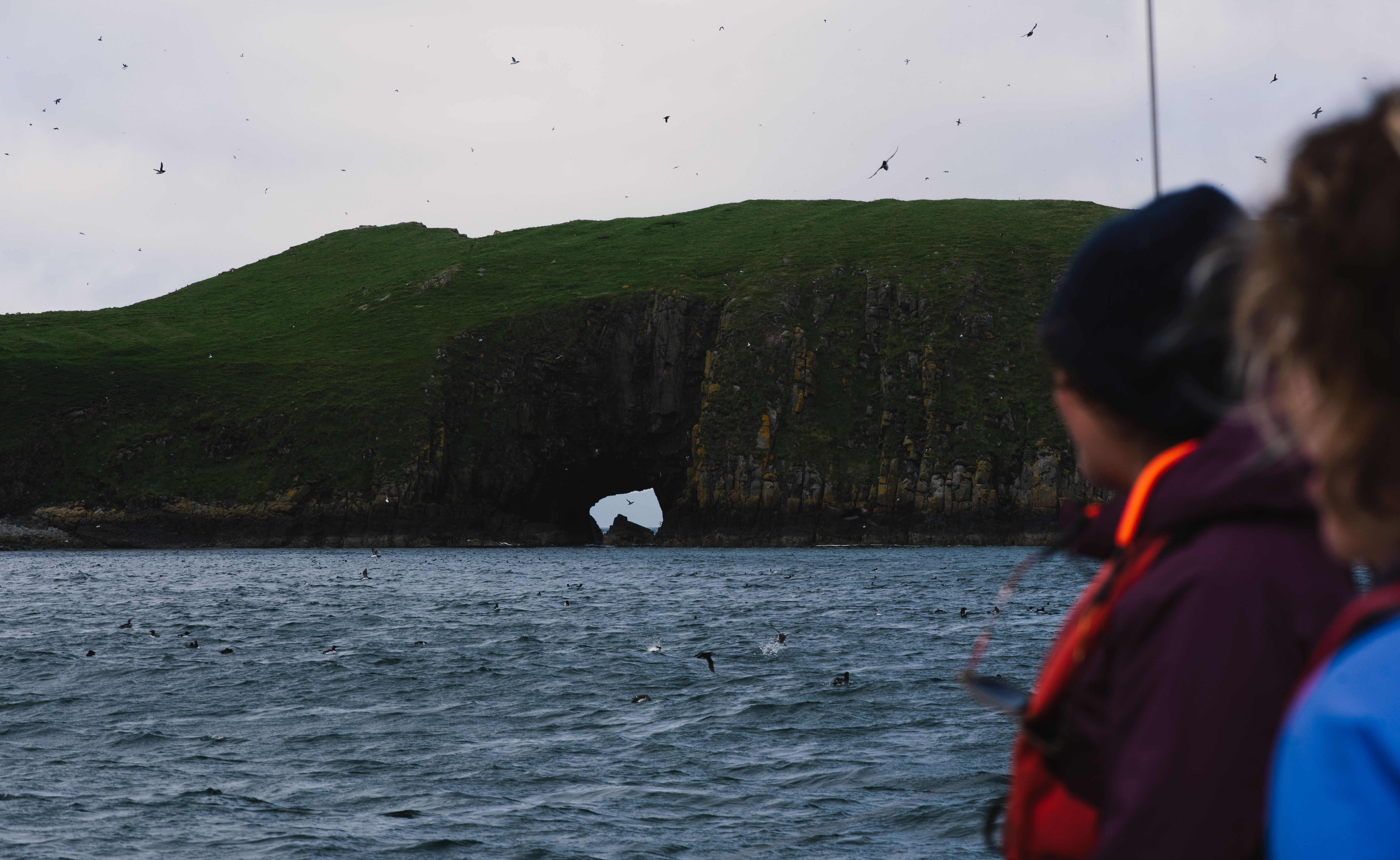 I felt so privileged to be in this special place, making me think of the beautiful planet we are building towards these days. I relished in the opportunity to stay off my phone, bundled up on the deck, listening to the winds and the howling of the seals, the clacking of birds, the swish of the waves on the boat and listening to stories and laughter of my companions below deck. The Shiants Reminded me so much about the topography of own island home, Newfoundland where we also have similar colonies of puffins, murres and razorbills around my home in Tors Cove, NL in the Witless Bay Ecological Reserve. However, this was my first time getting so close to a puffin borrow!