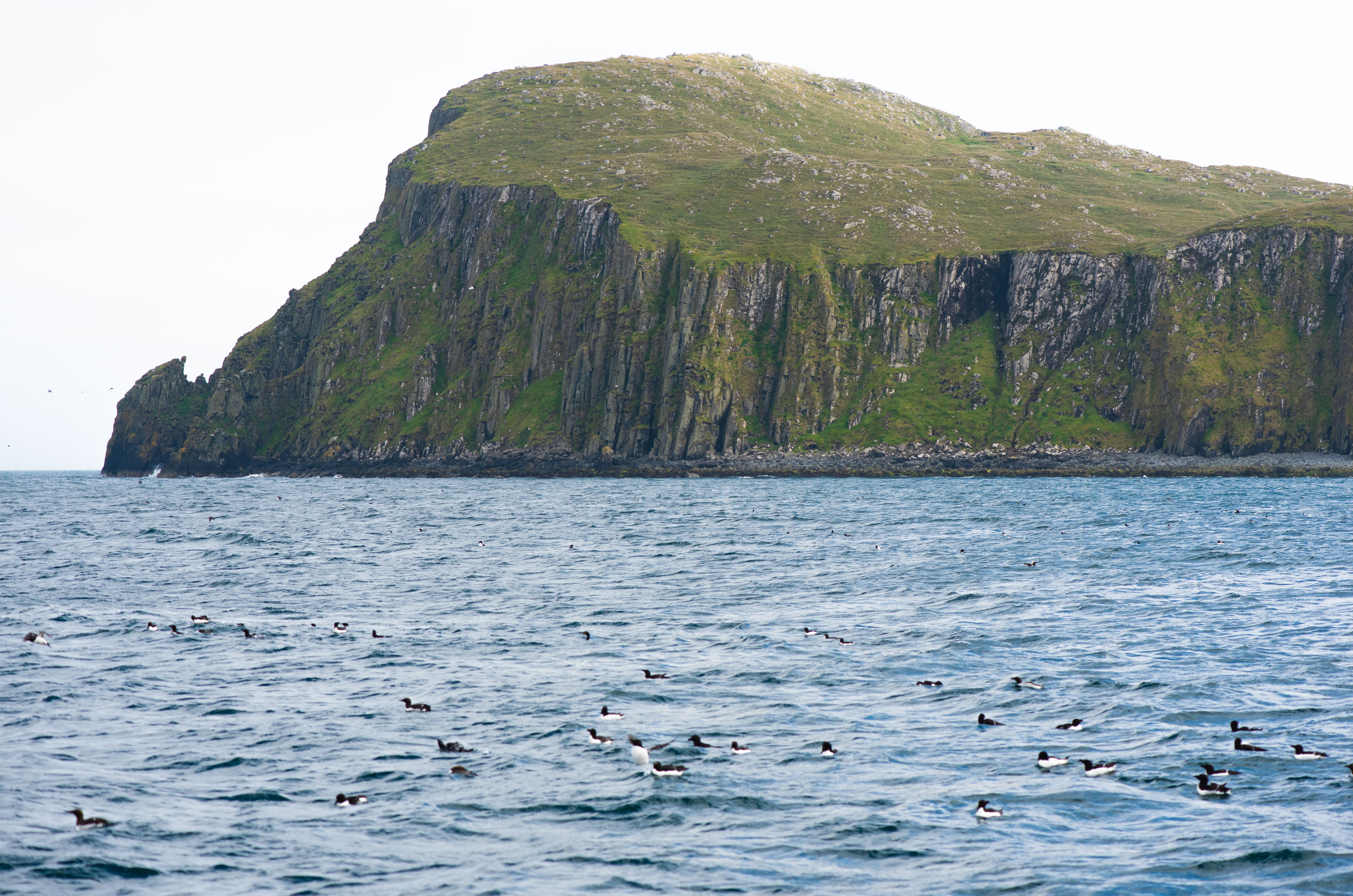 I love being in wild places like this. There were many seals close to the islands and the sounds they made were eerily like the howl of the wind. I wondered, have seals learned to speak with the winds here on the Shiants, as their main companions? The light on the islands was constantly changing- a truly amazing experience surrounded by islands in the middle of the ocean and millions of birds. I also learned that the Shiant Isles were owned (inherited) by one of my favourite authors, Adam Nicolson, who wrote the phenomenal book the Seabirds’s Cry. I don’t understand how such a biological important place can be privately owned, but then again, the UK’s land owning rights don’t make much sense to me. According to his book The Sea Room (which I have not finished yet), his father bought the islands in the 1920s. The Islands can be visited, as per Scotland’s Right to Roam laws, but of course one must be extremely sensible and not disturb the birds (or fall off the tall cliffs).