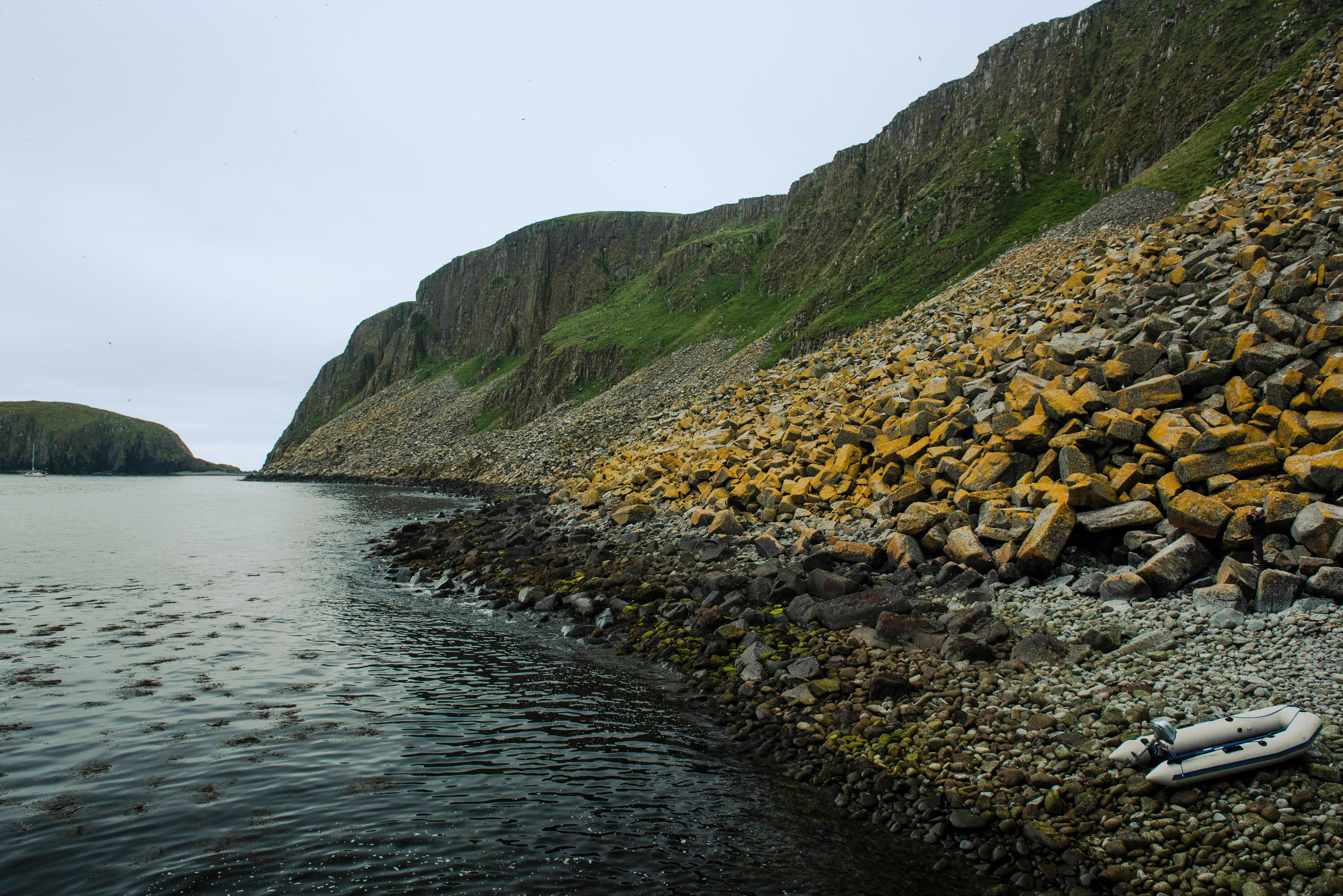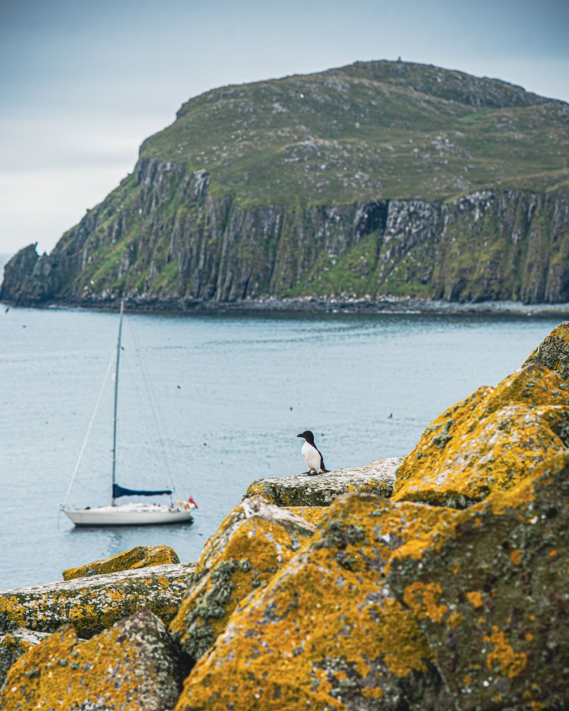 The next morning, using the small zodiac, Oliver and Tom shepherded us to the larger of the islands. We landed and had the opportunity to spend some time with the puffins, razorbills that nest on the islands. It was an incredible opportunity- breath-taking actually- I’m not sure I’m totally over it yet. After a few hours of exploring up close and personal with these stunning birds, we made our way back to the boat ready to sail on to our next destination. I could have stayed in the Shiants for a week.