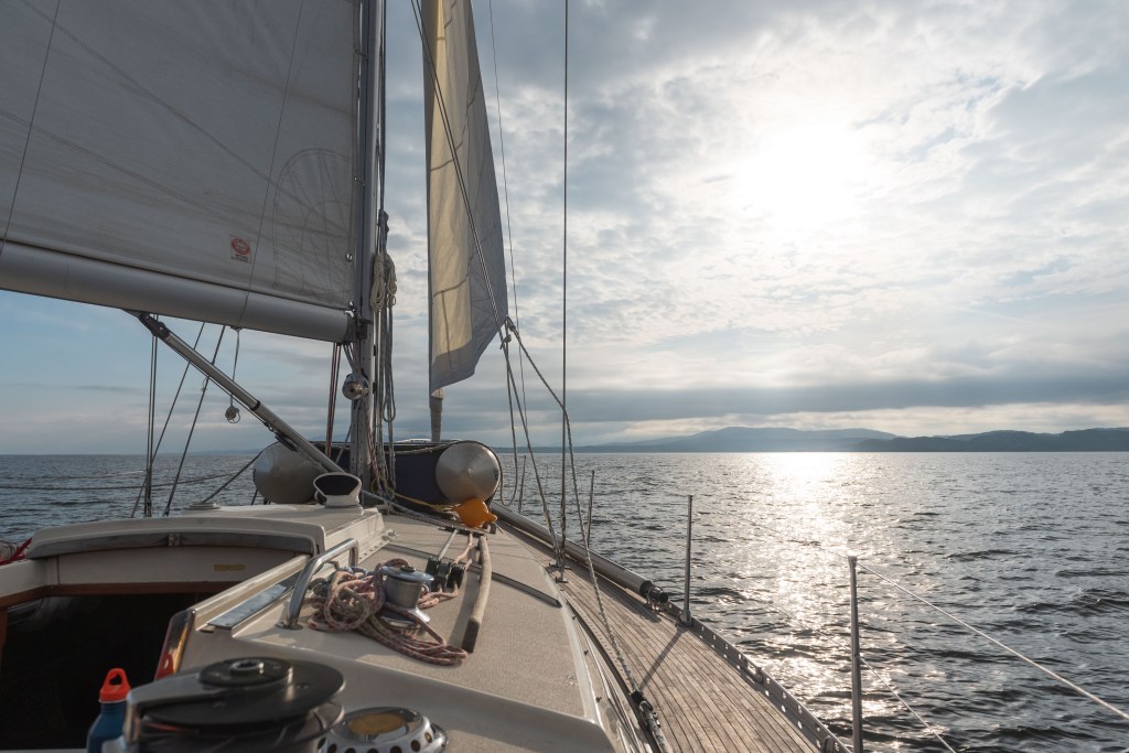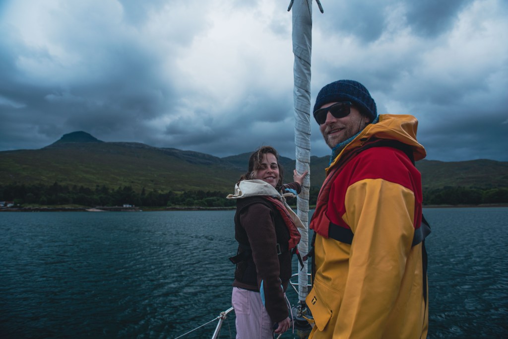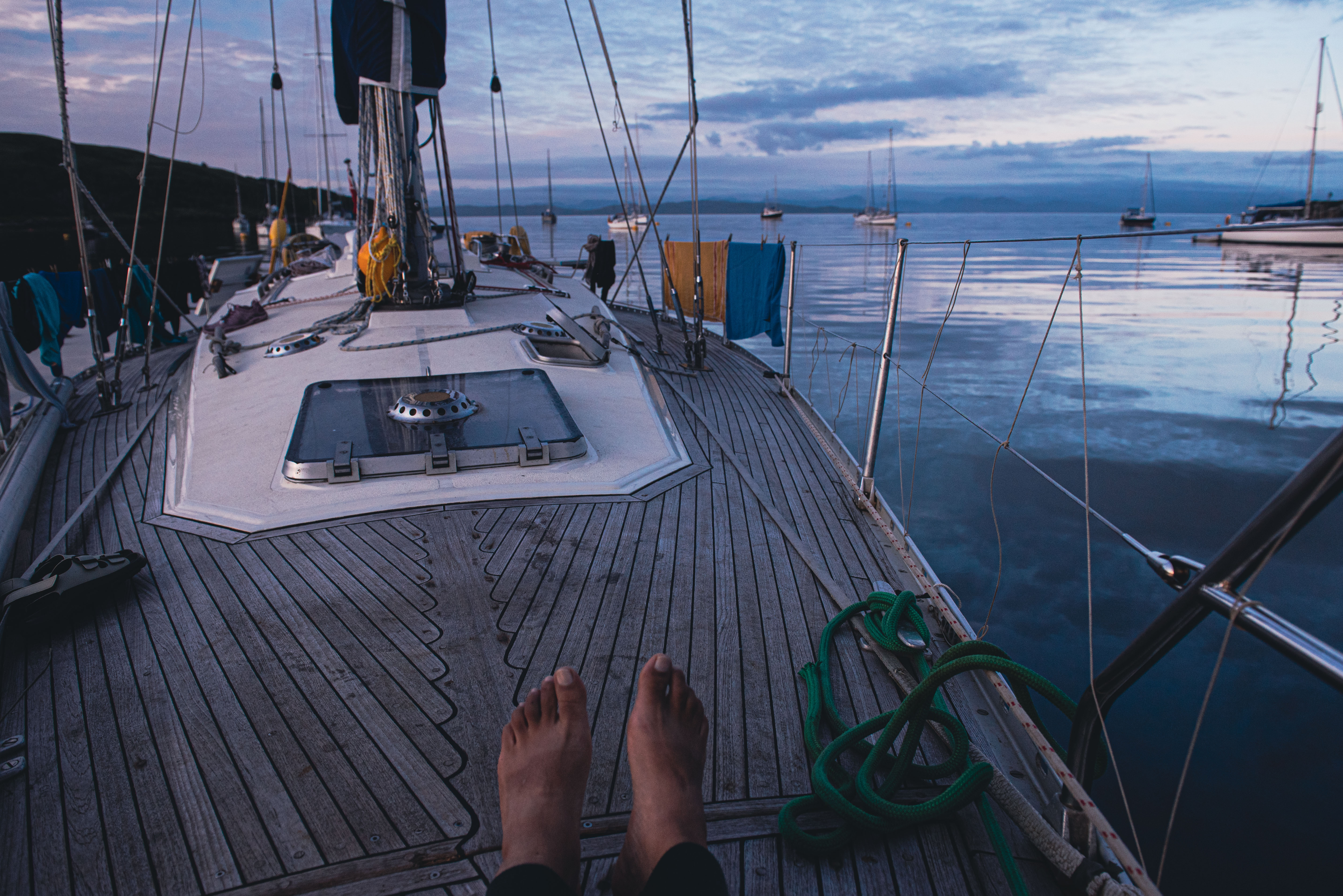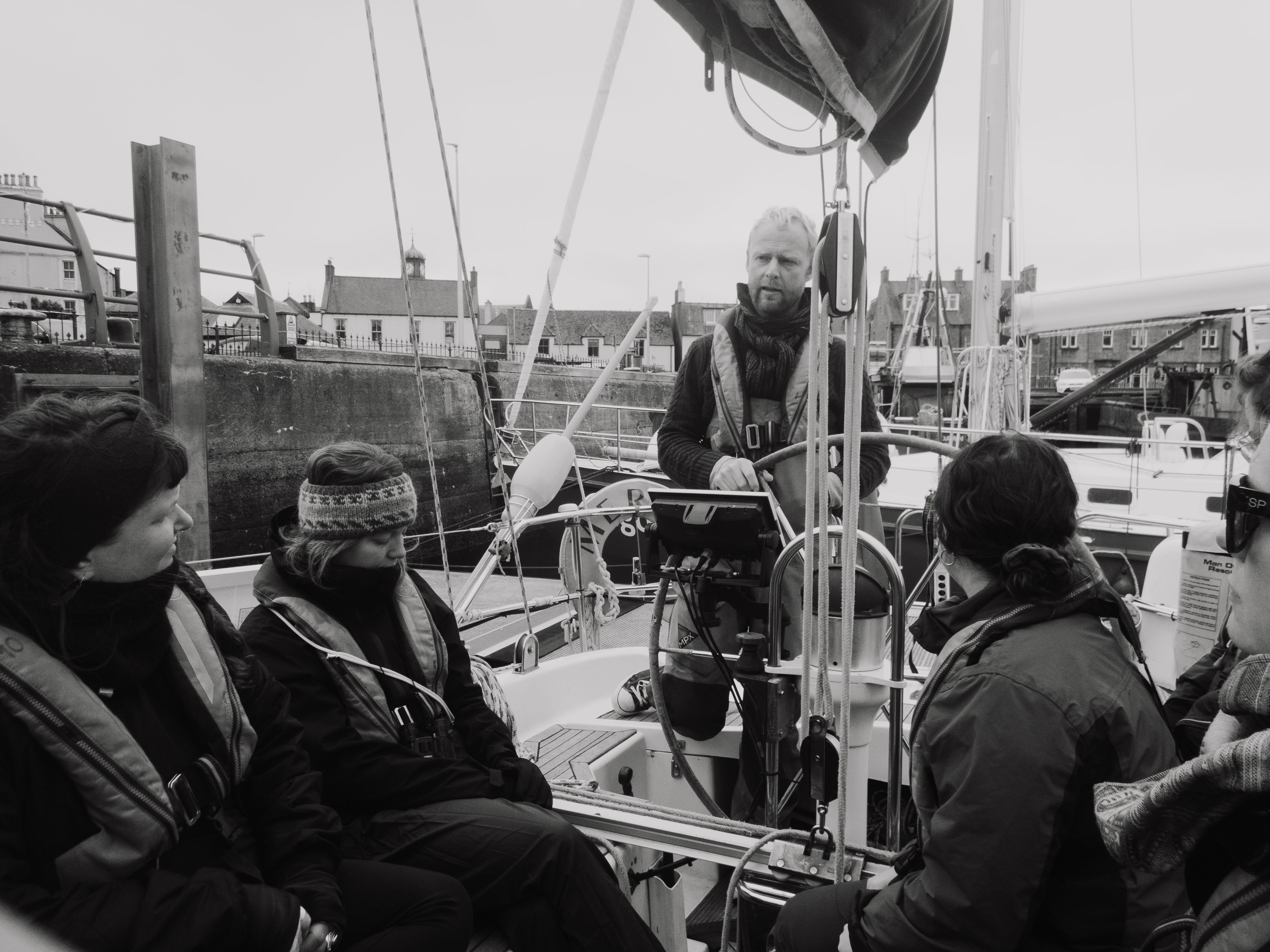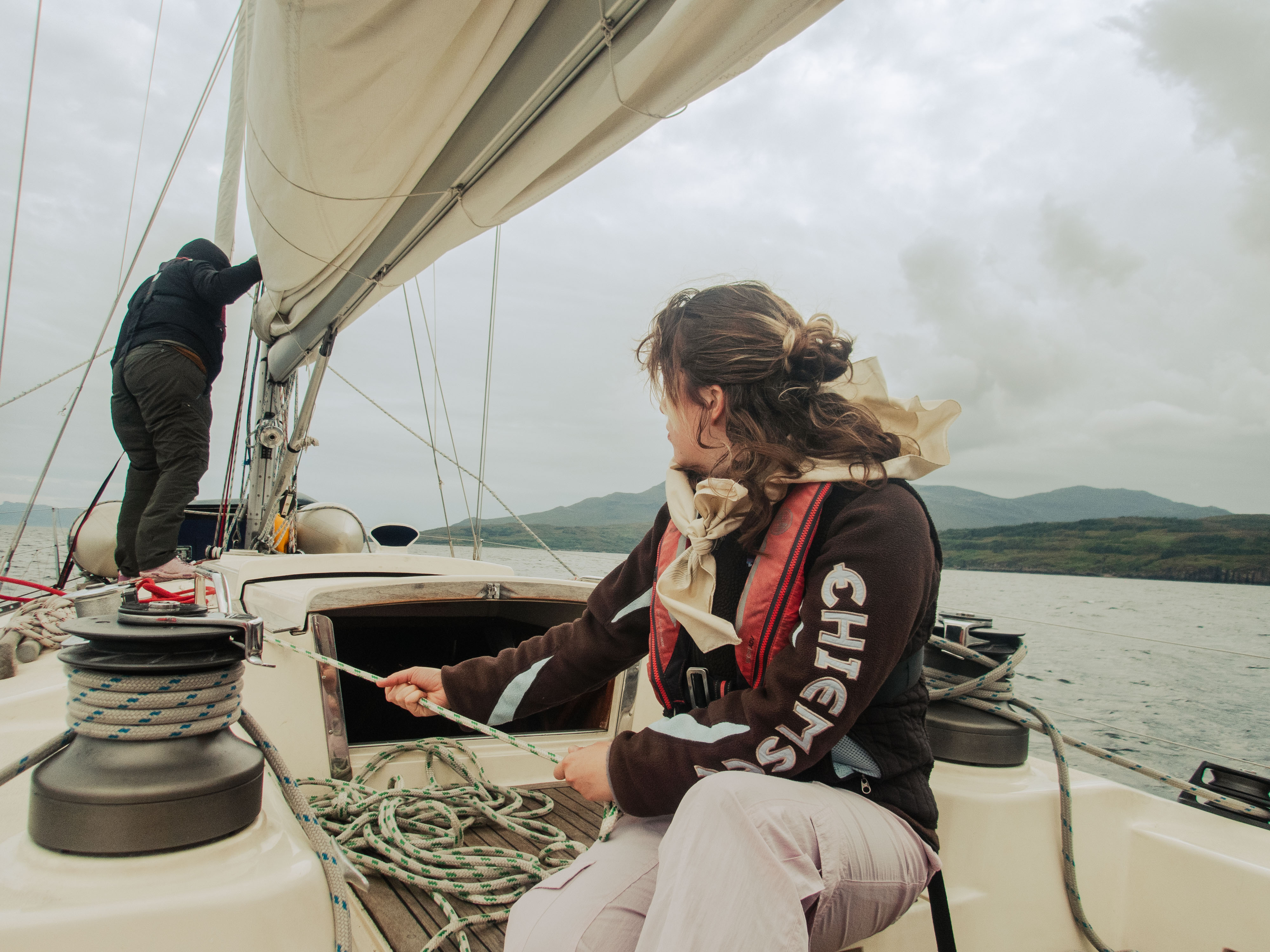 After an evening on the boat adjusting to our quarters and getting used to each other, we charted a course. After a short fuel-up, we started off with a ton of wind right out of Stornoway. We sailed for several hours without the wind dying down. I did take an opportunity to steer at this point- going at 5 or 6 knots per hour- was much more stressful than anticipated! We were all clipped on for dear life. We were not sure where we would anchor for the night as the wind was so strong.