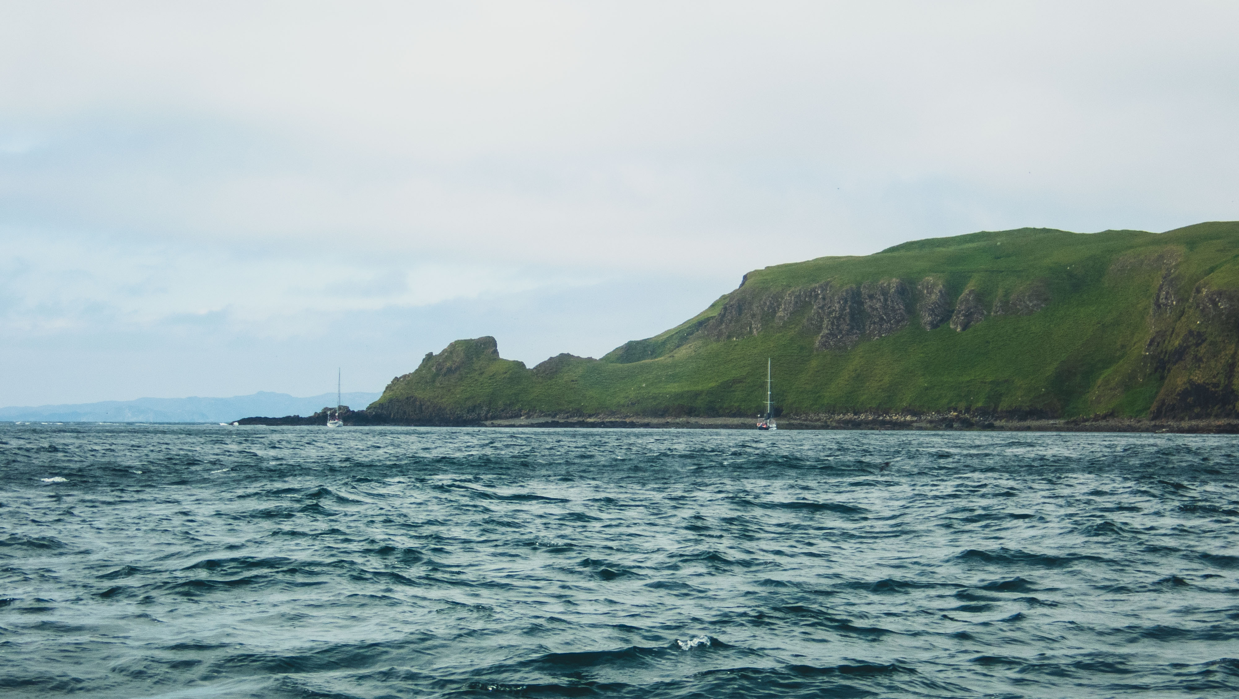 Our destination, if the wind gods allowed it, would be the Shiant Isles. This group of islands is in the middle of the channel between the Hebrides and the Isle of Skye. It is one of the most important breeding grounds for seabirds such as the Atlantic puffin and the common razorbill. Usually Merlin takes a much narrow channel into the Shiant Isles but this time around, we had to sail around. We saw only two other boats anchored in the archipelago so we tacked right out of the wind and in the lee of one of the islands. It was truly magical to feel the force of the wind and to work together as a team to tack back out of it.